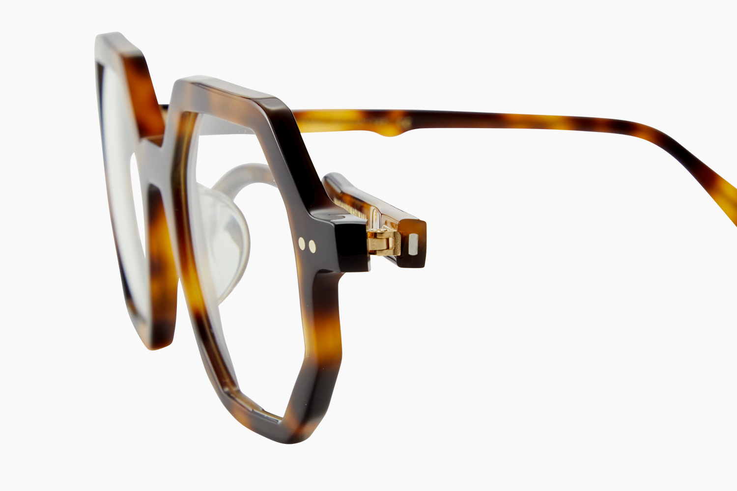 ブランドの5thコレクション【straight|ストレート】の新型として2019S/Sに発表されたモデル。直線のみで複雑に構成された八角形の玉型は一見すると無機質な印象ながら、かけてみると不思議と顔に馴染み、その人のクリエイティブな個性を演出してくれます。ラウンドやボストンといったオーセンティックなクラシックフレームとは違った個性をお求めの方におすすめです。ラインナップの中で一番カジュアルに掛けられるべっ甲柄は、女性にオーバーサイズでかけて頂くのもおすすめです。
