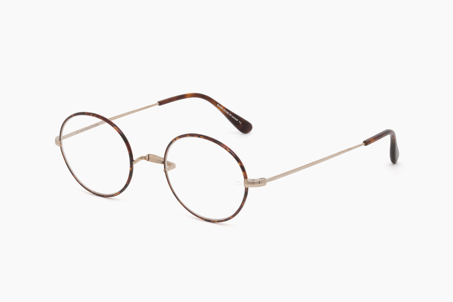 オリバー ゴールドスミスの中でも数少なく復刻されているメタルフレームの定番。軽くて丈夫、そして色の経年変化なども少ないチタニウムにて製作されています。美しい曲線を描く立体的な一山のブリッジやレンズとテンプルを同時に固定する「割智」と呼ばれるクラシカルなディテールなど、当時のデザインを忠実に再現。