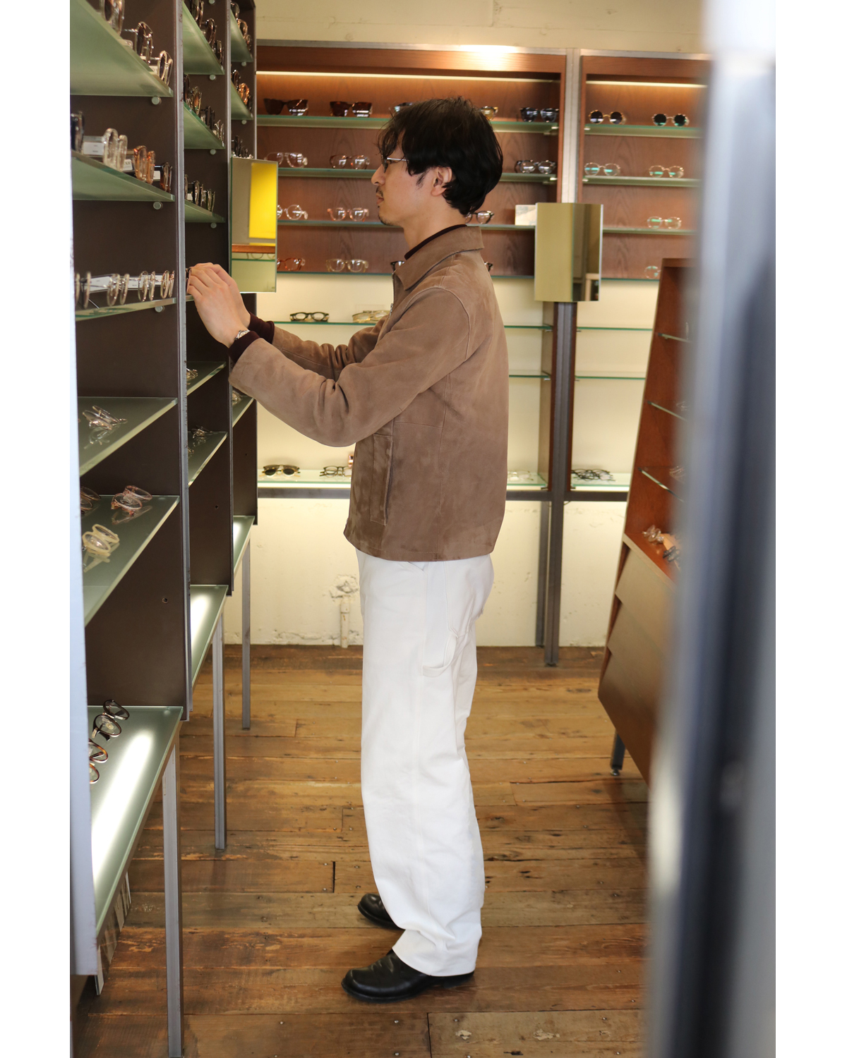 この生地は、かなり太番手の糸をあえて甘く織り、最後にハリが出る加工を施されています。「柔らかそうで硬く、硬そうで柔らかい」抜群にバランスのとれた生地。真っ白のペインターパンツは、汚れを気にせずにガンガン履き込んでいただき、味わいを出してもらいたいモデルです。