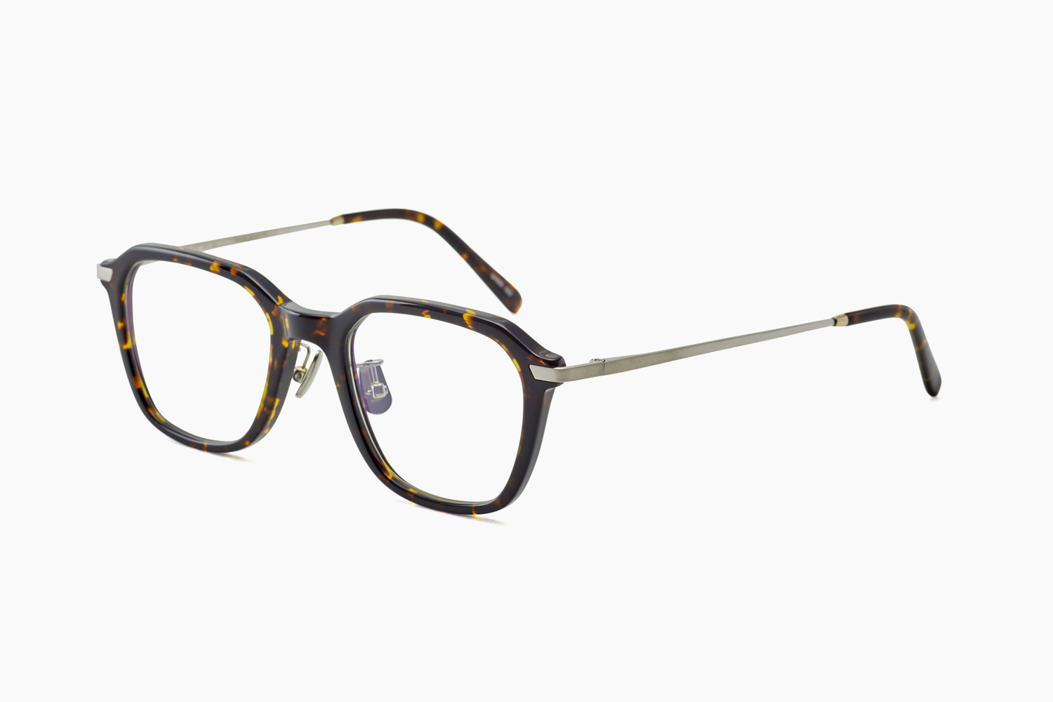 ドイツのプロダクトから着想を得た「tpr-005」。智元の下がったスクエアシェイプが特徴的なモデルです。フレームのデザインは直線的なラインで構成しながら、線自体は細くニュートラルな印象に。チタンのノーズパットやテンプルは装用感も軽くアクティブな要素をプラスしています。