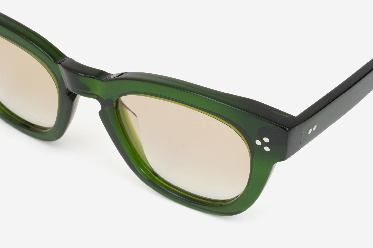 <OLIVER GOLDSMITH>は、90年代のブランド休止期間を経て、2005年に復活。現在は、過去に多くの著名人をも魅了した1950年代から70年代のモデルを中心に復刻する、アーカイヴコレクションとして発表されています。その中でも<OLIVER GOLDSMITH SUNGLASSES>は初代フィリップ・ゴールドスミスのひ孫にあたる、クレア・ゴールドスミスが監修。創業から約100年にも及ぶ、脈々と受け継がれてきたレガシーを守り当時のアーカイブモデルを復刻させながら、現代のシーンにもマッチするスタイルを提案し続けてきました。過去、国内では一部のモデルが少量入荷に留まっていた同ブランドのサングラスコレクションがこの度本格的に展開されることとなりました。その中でも本モデルはブランドらしさ溢れる立体的なフレームに淡いサングラスレンズを装着し、クラシックさと新鮮な印象を併せ持つ同ブランドの新作となるWinter Sunシリーズ。