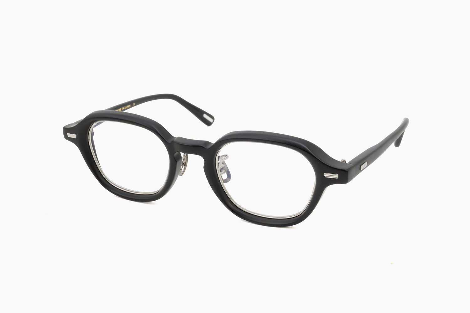 エクスクルーシブカラー「マットブラック」。これまで艶感のあるアセテートを用いて表現されてきたフレームもマットにすることで、より独特な存在感を放ちます。インナーメタルにチタンカラーを採用し、モードさやラギッドな雰囲気も内包した面持ちが魅力のカラー。