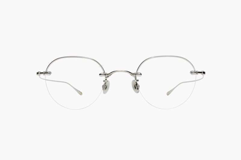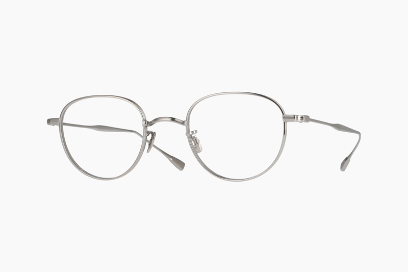 ボストン型のレンズシェイプを用いたブロータイプ。ダルマドットリムやサイズの異なる3PINカシメリベット、前後から重ねられたダブルブリッジ、ブランドオリジナルのミリタリー丁番など、細部からブランドの“らしさ”感じるフレームに。裏側から見ても美しい、抜け目のないフレーム。