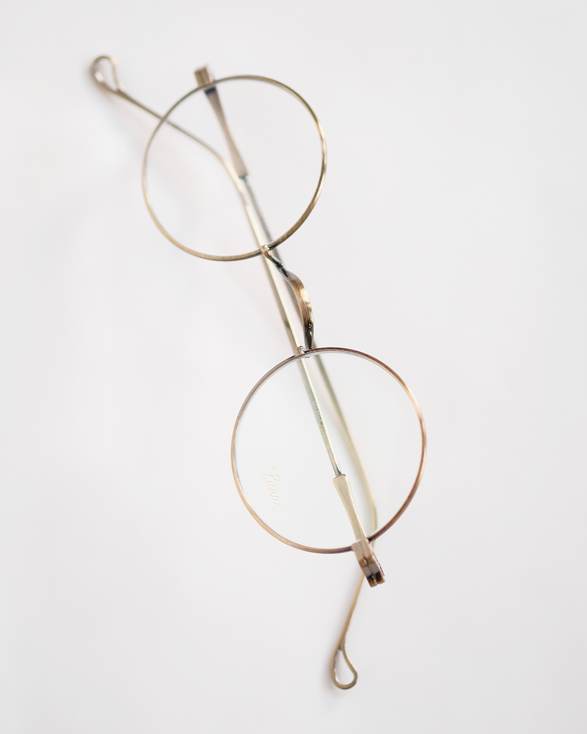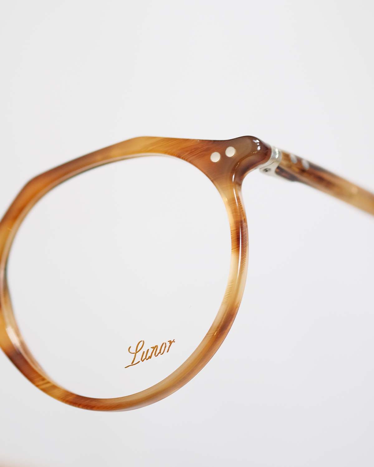 1900年代以降、それまで特権階級の持ち物であった眼鏡が、庶民に普及する大量生産の時代を迎えるにあたって様々な改良が加えられました。その一つがノーズパットの存在。これにより多くの人が快適に眼鏡を掛けられるようになります。Ⅴシリーズは一山式ブリッジの優雅さと、ノーズパットによる快適さが両立し、またブリッジにはステンレスを使用することで柔軟な掛け心地を実現しています。ルノアの美しい玉型とともに完成されたデザインは当店でも人気の一品。現在は、M5シリーズとして復刻を遂げ再リリースされました。▼