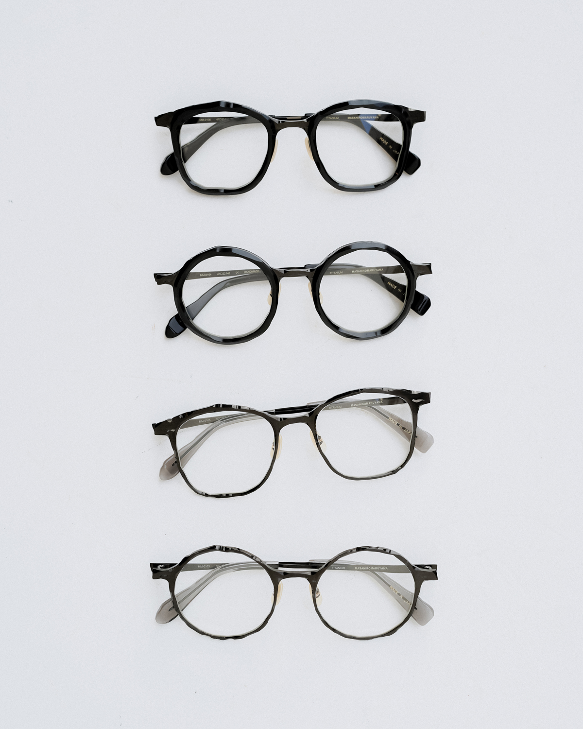 その他、〈sculpt〉のコンセプトを拡張する形でラギッドなメタルフレーム、また、黒檀モデル「MM-0104」、「MM-0106」のアセテートVer.も展開。店頭では多彩なバリエーションで発表された最新コレクションが、全国発売に先駆けてご覧いただける特別な期間となります。旧作も数多く揃うこの機会にぜひ店頭にて〈MASAHIROMARUYAMA〉の世界観をご体感ください。