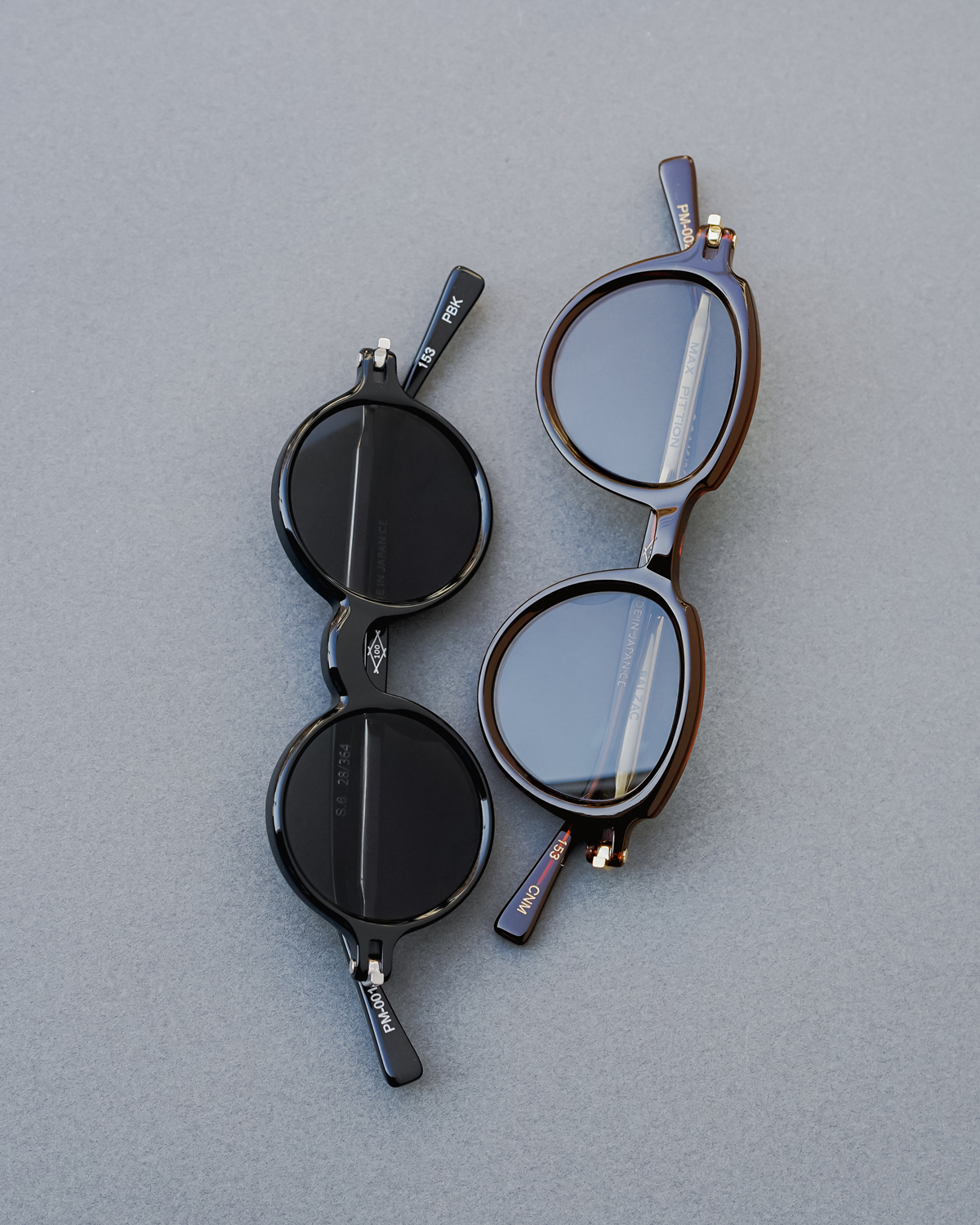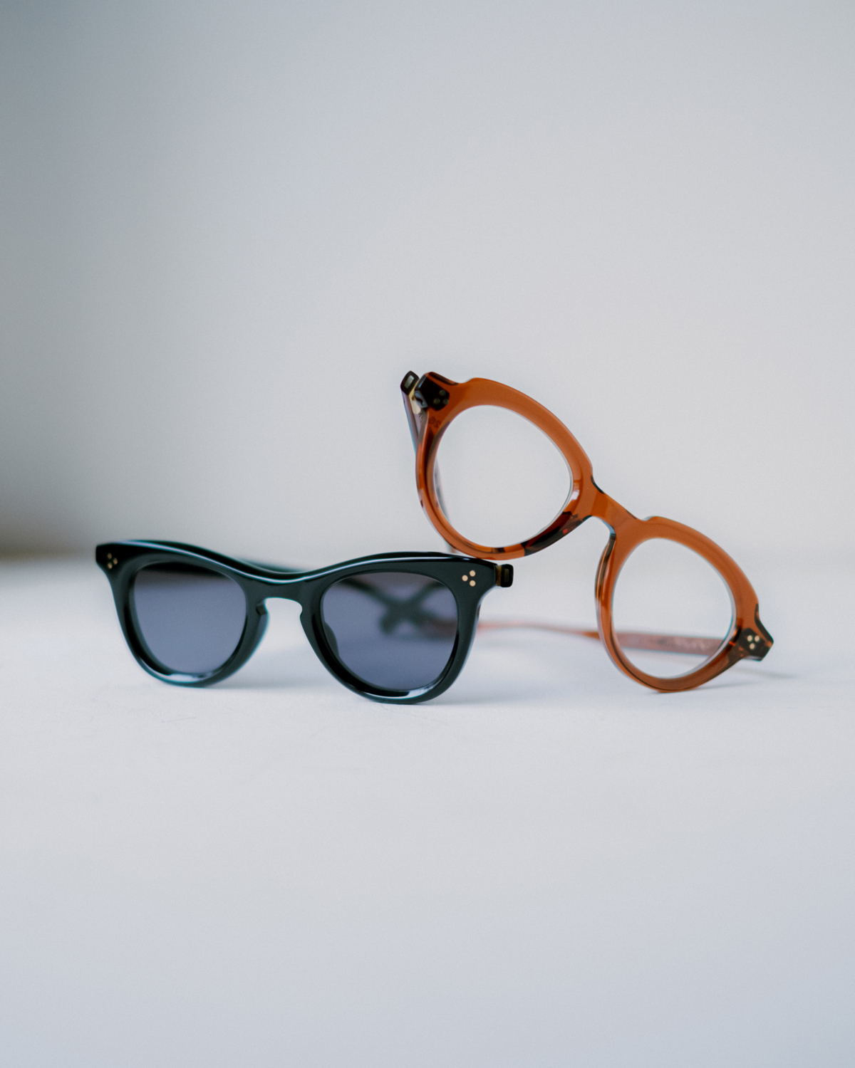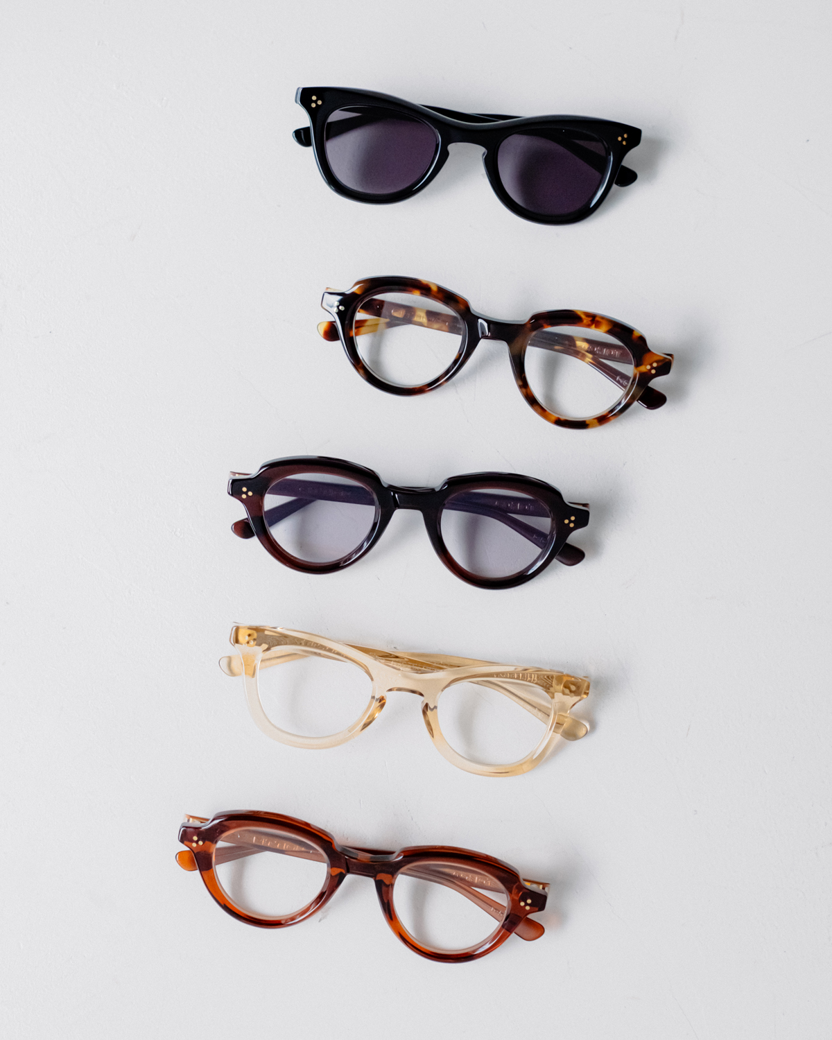 今回は、先日デリバリーとなった新作 コンビネーションフレーム もラインナップ。メタルのコンビネーションテンプルや、独特なムードを宿す造形が単なるクラシックとも異なる趣のデザイン。より幅広いスタイルに応える豊富なカラーバリエーションに加え、サングラスVer.も展開しています。